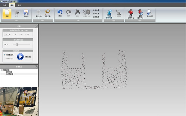 以全局攝影測量系統獲得的標記點數據為整體基準,輻射到個別掃描區域,掃描汽車整車以及部分拆解后的零件,獲取其三維數據。